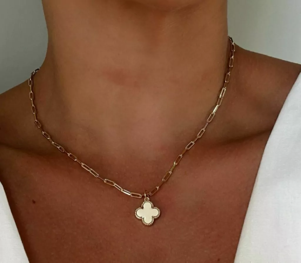 Colar Trevo Off Banhado em Ouro 18k é uma peça sofisticada que une elegância e modernidade. Com um design delicado em forma de trevo, o colar é banhado em ouro 18k, garantindo um brilho luxuoso e duradouro. A cor Off adiciona um toque de mistério e sofisticação, tornando este acessório ideal para ocasiões especiais ou para adicionar um toque de glamour ao seu look diário. A combinação do ouro com o preto cria um contraste marcante que realça o estilo e a personalidade de quem o usa. Tamanho 45 cm Peso 10g Código 20856