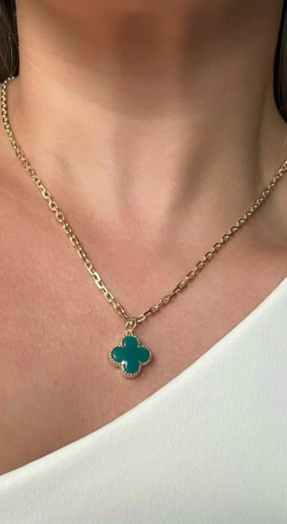 Colar Trevo verde Banhado em Ouro 18k é uma peça sofisticada que une elegância e modernidade. Com um design delicado em forma de trevo, o colar é banhado em ouro 18k, garantindo um brilho luxuoso e duradouro. A cor verde adiciona um toque de mistério e sofisticação, tornando este acessório ideal para ocasiões especiais ou para adicionar um toque de glamour ao seu look diário. A combinação do ouro com o preto cria um contraste marcante que realça o estilo e a personalidade de quem o usa. Tamanho 45 cm Peso 10g Código 20855